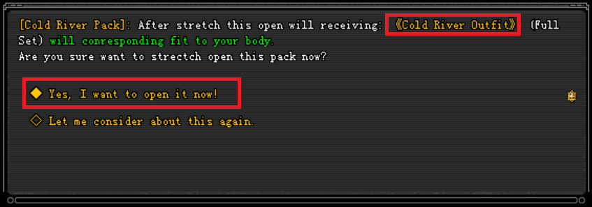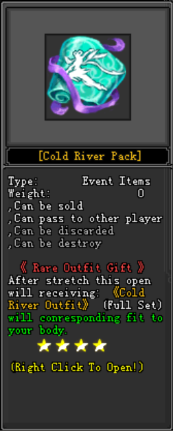 - បន្ថែម [Cold River Pack] នៅក្នុងហាងទំនិញ៖ មានតម្លៃ [x1 Nuwa Stone]។