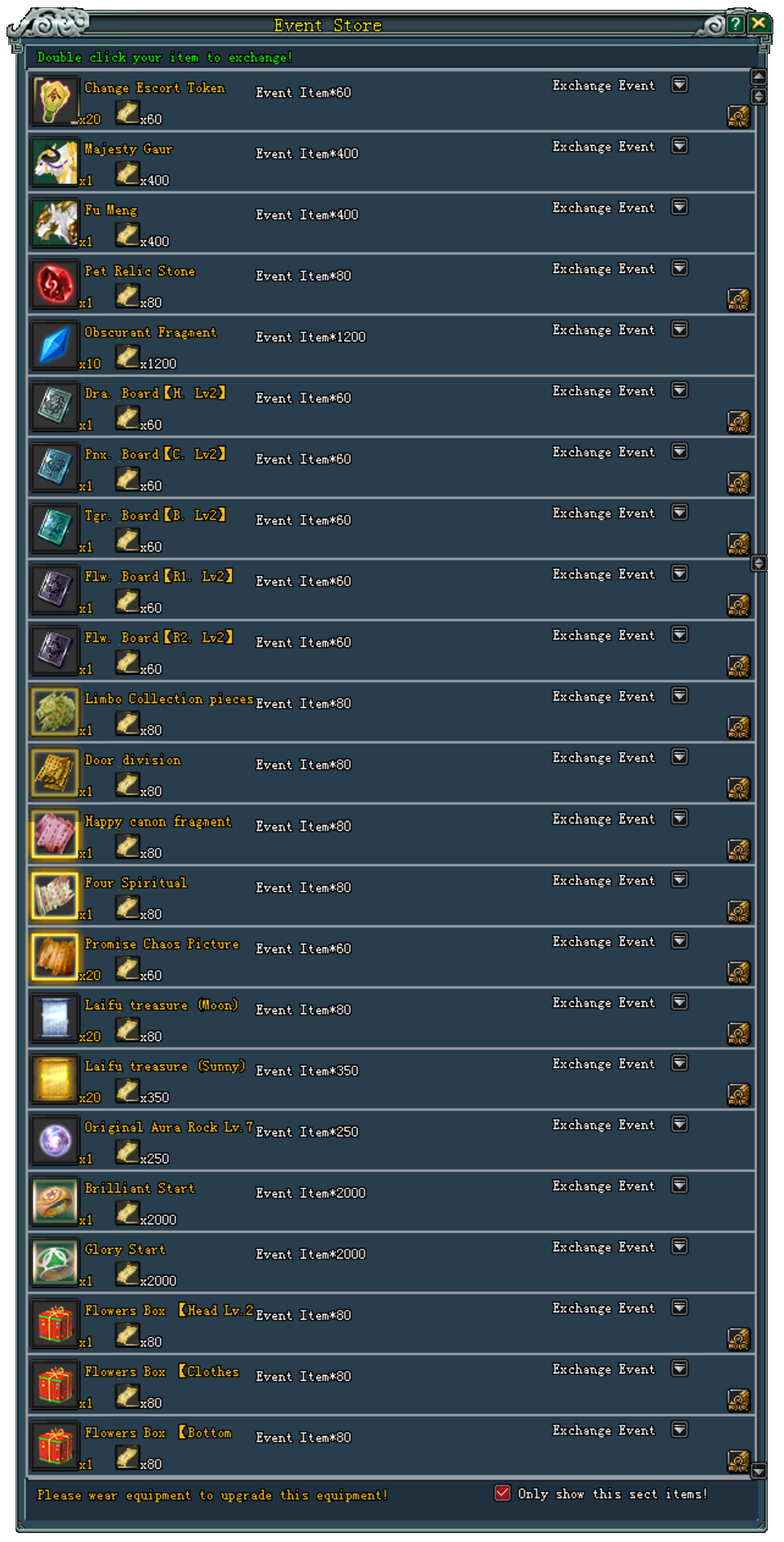 • តួអង្គនីមួយៗ ត្រូវតែមានកម្រិត យ៉ាងហោចណាស់ Level 60 ឡើងទៅ ហើយបាន ចូលបក្សរួច ដើម្បីអាចរើសយក ប្រអប់ទាំងនោះបាន។