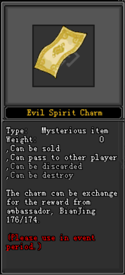 4. ការផ្លាស់ប្តូររង្វាន់ដោយប្រើ Evil Spirit Charm៖